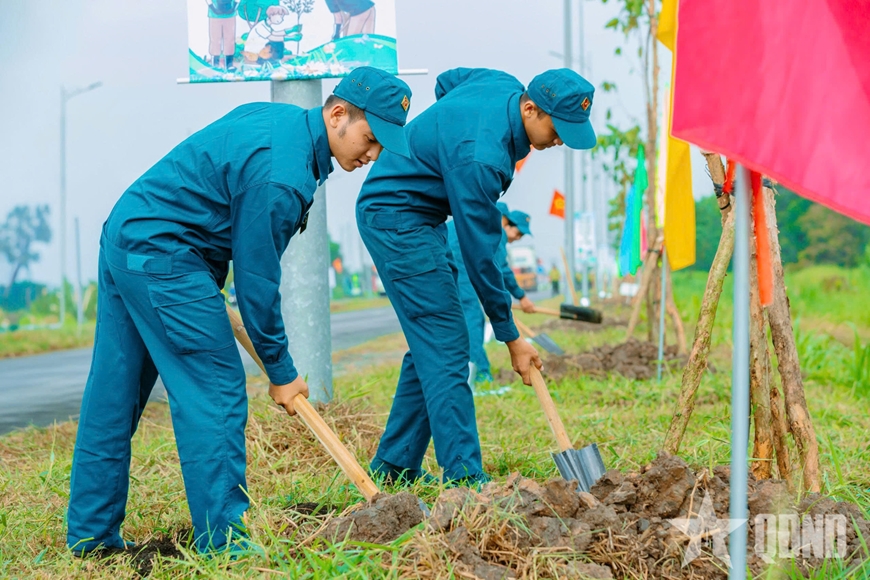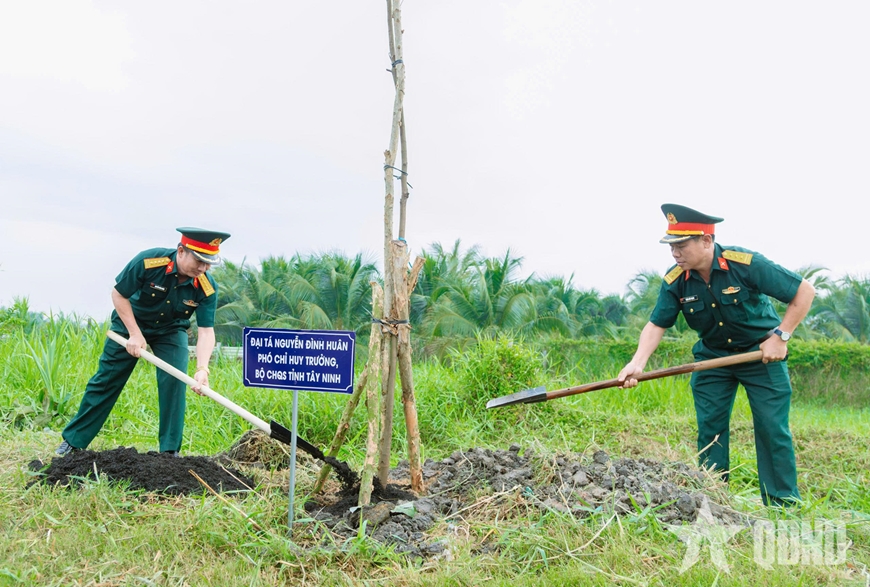 | Lực lượng vũ trang tỉnh Tây Ninh tham gia trồng cây. |