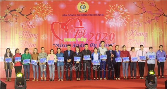 Ngày 5-1, tại Khu công nghiệp Đồng Văn, huyện Duy Tiên, tỉnh Hà Nam, Liên đoàn Lao động tỉnh Hà Nam tổ chức chương trình “Tết sum vầy năm 2020”.