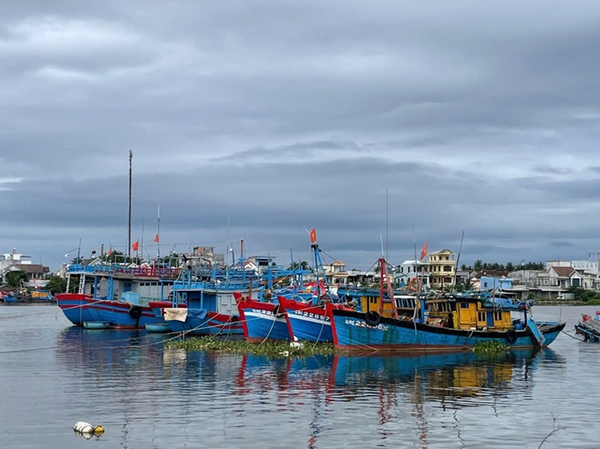 | Tàu thuyền ngư dân xã An Phú, tỉnh Quảng Ngãi về nơi neo đậu tránh trú bão. Ảnh: ĐỨC MINH |