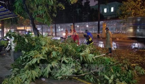 Cây xanh trên đường Nguyễn Kiệm bị quật đổ. |