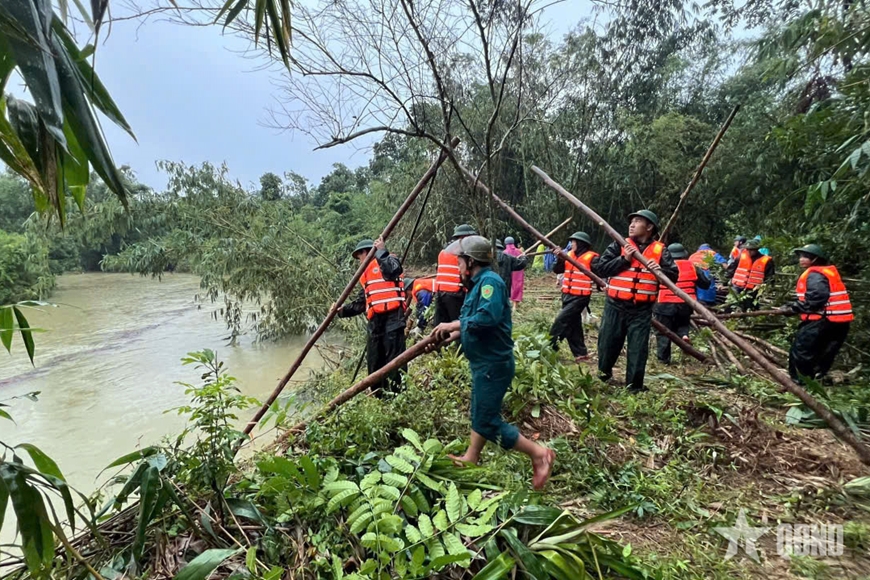 Các lực lượng đã huy động phương tiện, sử dụng các vật liệu như: Cọc gỗ, bạt, đất, đá để đắp, củng cố đoạn bờ bị sạt, kịp thời ngăn chặn nguy cơ sạt lở lan rộng, bảo đảm an toàn cho khu dân cư lân cận.