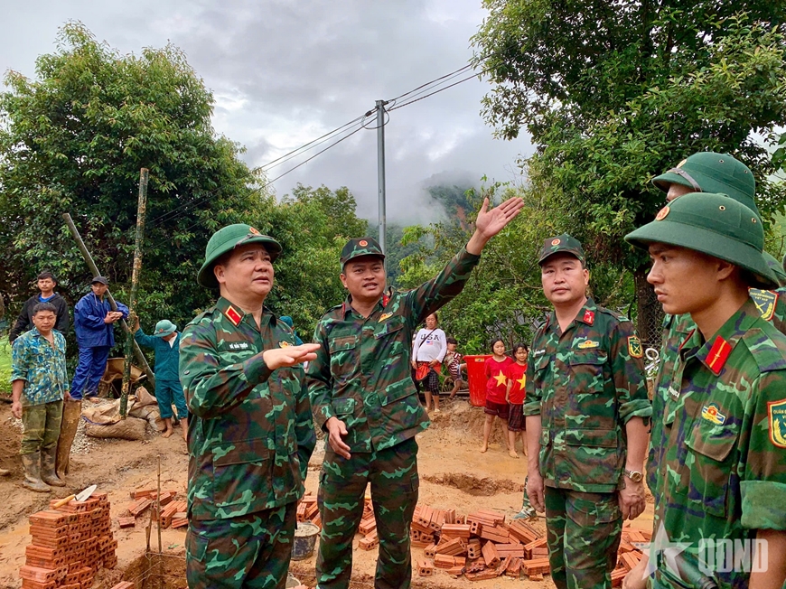 Tại các điểm kiểm tra, Thiếu tướng Bế Hải Triều thay mặt Tổng cục Chính trị Quân đội nhân dân Việt Nam biểu dương và đánh giá cao sự nỗ lực, tinh thần trách nhiệm và ý chí quyết tâm của toàn thể cán bộ, chiến sĩ, lực lượng dân quân đang thực hiện nhiệm vụ xây dựng và sửa chữa nhà ở cho các hộ dân bị thiệt hại do mưa lũ; mong muốn cán bộ, chiến sĩ giữ gìn sức khỏe, phát huy hết tinh thần trách nhiệm, khắc phục khó khăn, thi công bảo đảm tiến độ, chất lượng, an toàn.