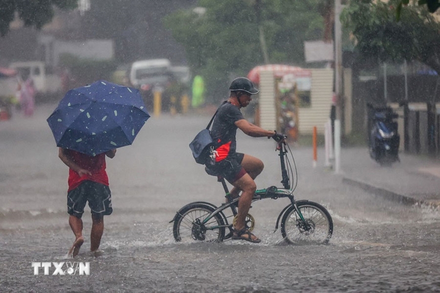 | Cảnh ngập lụt sau những trận mưa lớn do ảnh hưởng của bão Wipha tại Quezon, Philippines (tháng 7-2025). Ảnh: THX/TTXVN |
