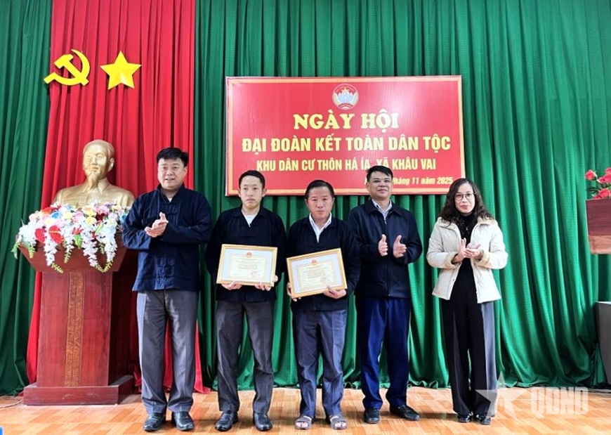 Phát biểu tại Ngày hội, đồng chí Ngô Mạnh Cường biểu dương những kết quả mà cán bộ, nhân dân thôn Há Ía đạt được; đồng thời mong bà con tiếp tục phát huy truyền thống đoàn kết, giữ vững an ninh trật tự, xây dựng đời sống văn hóa, góp phần xây dựng xã Khâu Vai ngày càng giàu đẹp, văn minh.
