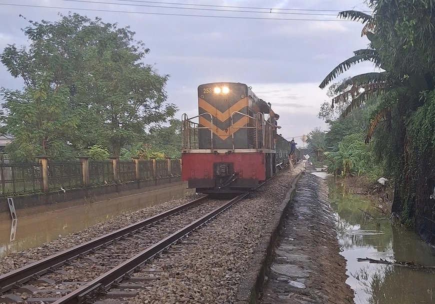 | Tuyến đường sắt Bắc-Nam qua thành phố Huế được thông tuyến sau nhiều ngày ách tắc do mưa lũ.  |