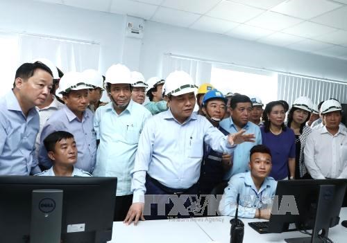 Thủ tướng Nguyễn Xuân Phúc thị sát hạng mục công trình cải thiện môi trường của FHS. Ảnh: TTXVN
