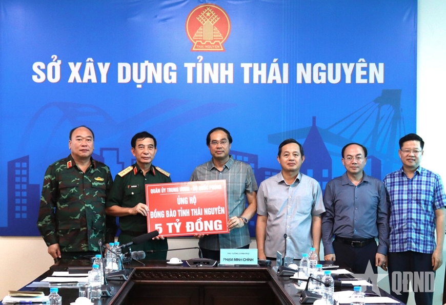Bộ trưởng Bộ Quốc phòng Phan Văn Giang thay mặt Quân ủy Trung ương, Bộ Quốc phòng hỗ trợ tỉnh Thái Nguyên khắc phục hậu quả mưa lũ. |