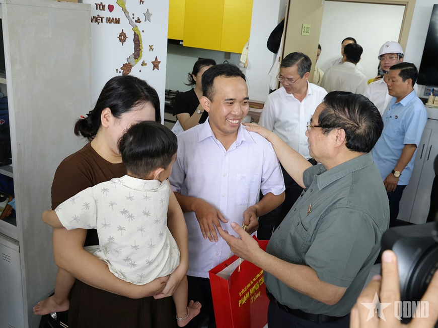 Thủ tướng Phạm Minh Chính thăm, tặng quà hộ gia đình trong dự án.