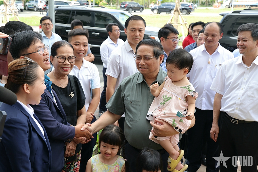 Thủ tướng Phạm Minh Chính và người dân tại dự án nhà ở xã hội Nam Long 2 (khu đô thị mới Nam Cần Thơ, phường Cái Răng, TP Cần Thơ).
