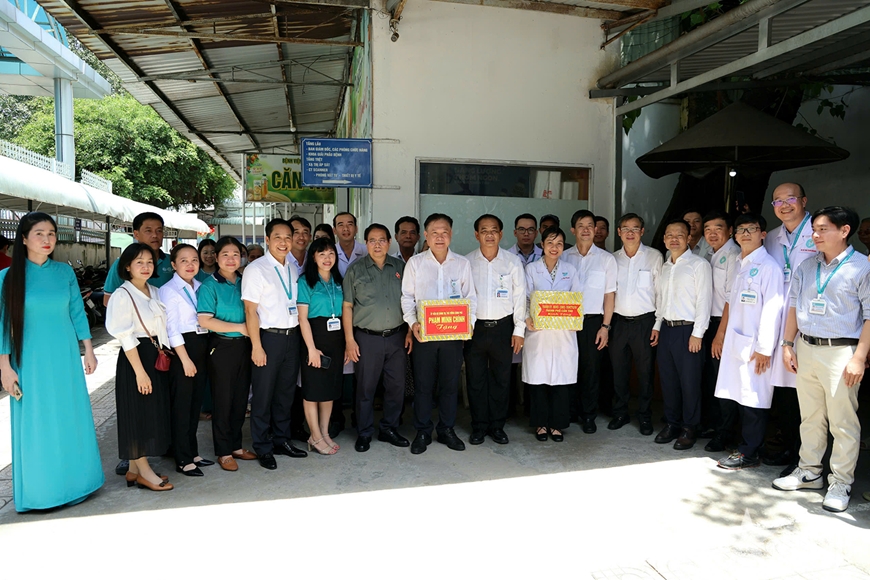 Tiếp đó, Thủ tướng Phạm Minh Chính thăm và kiểm tra Bệnh viện Ung bướu TP Cần Thơ (cơ sở cũ), thăm hỏi, động viên đội ngũ y, bác sĩ, bệnh nhân và người nhà.