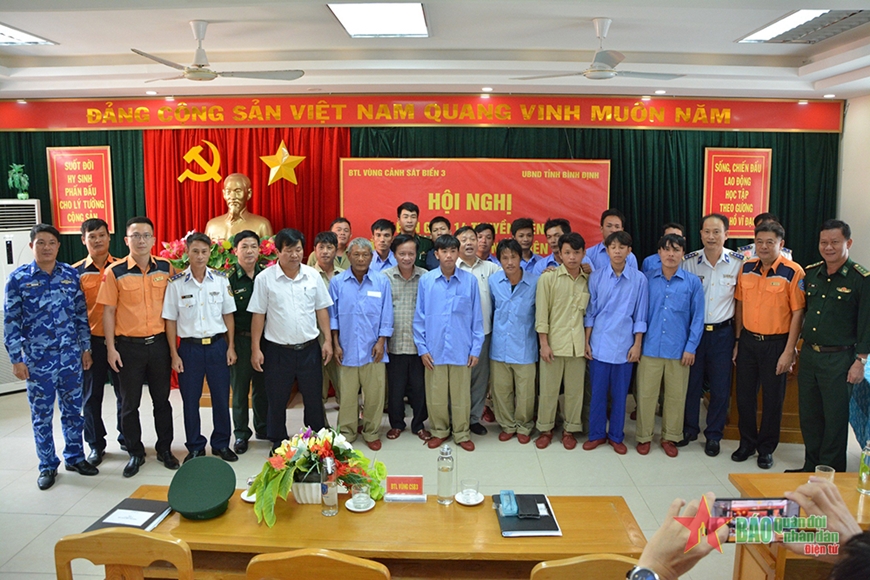 Tại buổi bàn giao, ông Trần Văn Phúc, Giám đốc Sở Nông nghiệp và Phát triển nông thôn tỉnh Bình Định đã gửi lời cảm ơn các lực lượng chức năng đã kịp thời huy động nhân lực và phương tiện tìm kiếm, kịp thời cứu vớt 14 ngư dân gặp nạn đưa về bờ an toàn.