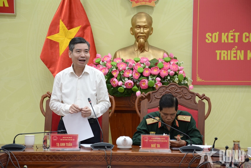 | Đồng chí Tạ Anh Tuấn, Chủ tịch UBND tỉnh, Trưởng ban chỉ huy PTDS tỉnh Đắk Lắk phát biểu chỉ đạo. |