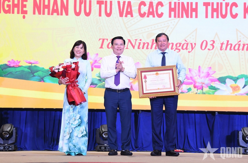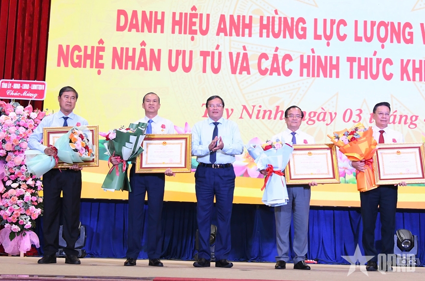 Trong đó, đồng chí Phan Thị Út (Út Nghét), nguyên Đội trưởng Đội Biệt động mật xã An Tịnh, huyện Trảng Bàng, tỉnh Tây Ninh (nay là phường An Tịnh, tỉnh Tây Ninh) được phong tặng danh hiệu Anh hùng LLVT nhân dân vì đã có thành tích đặc biệt xuất sắc trong cuộc kháng chiến chống Mỹ, cứu nước; bà Trần Thị Lành, xã Tân Lân, tỉnh Tây Ninh được phong tặng danh hiệu Nghệ nhân ưu tú vì đã có nhiều cống hiến trong gìn giữ và phát huy giá trị di sản văn hóa của dân tộc trong lĩnh vực nghề thủ công mỹ nghệ; Đảng bộ, chính quyền và nhân dân tỉnh Tây Ninh được tặng thưởng Huân chương Lao động hạng Ba.