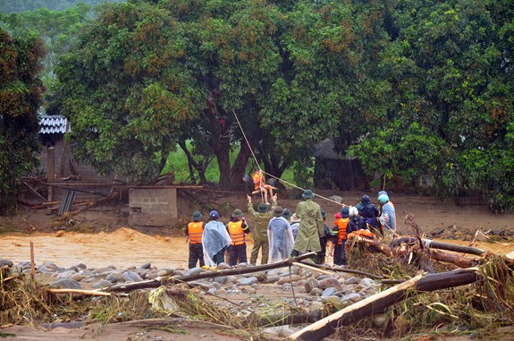 Cứu người dân ra khỏi vùng nguy hiểm xã Sơn Lương.