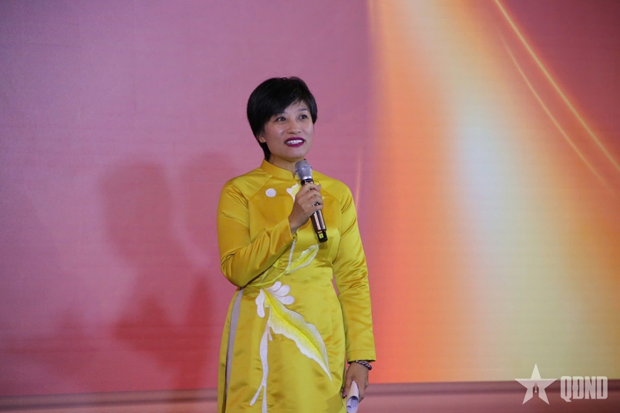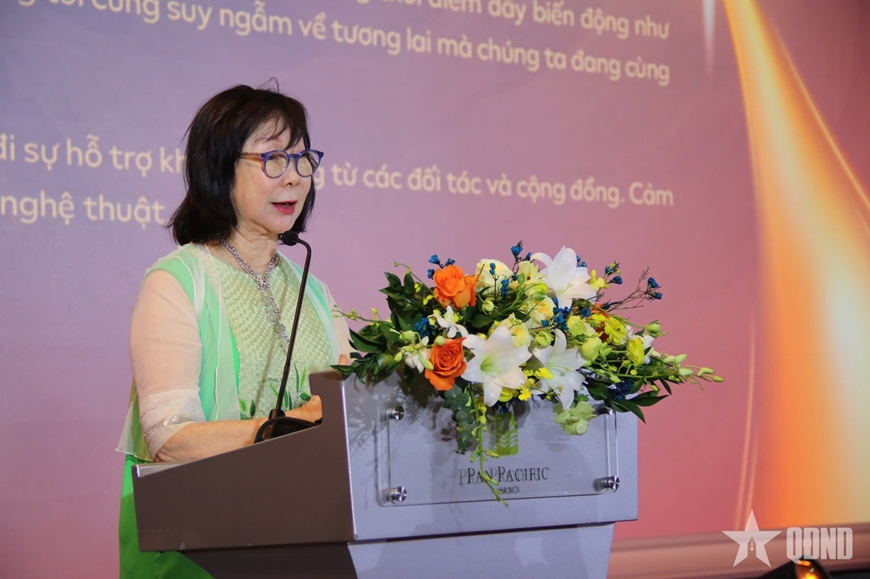 | Nghệ sĩ Nhân dân Trần Ly Ly chia sẻ tại lễ trao giải. |