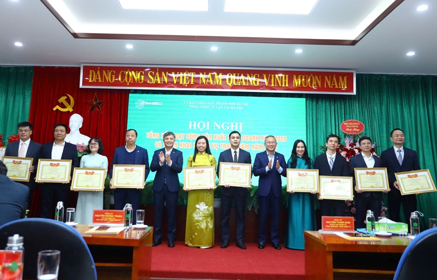 Lãnh đạo Tổng công ty Vận tải Hà Nội (Transerco) trao giấy khen tặng các đơn vị hoàn thành xuất sắc nhiệm vụ năm 2025.