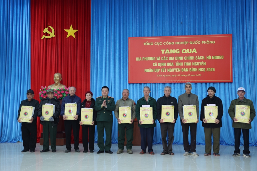 Thủ trưởng Tổng cục Công nghiệp Quốc phòng đã trao quà Tết của Tổng cục tặng địa phương, gia đình chính sách, người có công và gia đình khó khăn. Đại diện Nhà máy Z115, Z127 thuộc Tổng cục cũng trao kinh phí tặng Quỹ Vì người nghèo, Quỹ Đền ơn đáp nghĩa và trao quà chúc Tết chính quyền, nhân dân địa phương.
