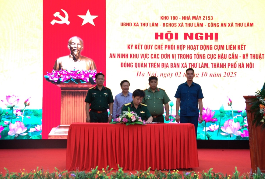 Tại hội nghị, các đơn vị đã tiến hành ký kết quy chế phối hợp hoạt động của Cụm liên kết an ninh khu vực các đơn vị của Tổng cục Hậu cần - Kỹ thuật đóng quân trên địa bàn xã Thư Lâm.