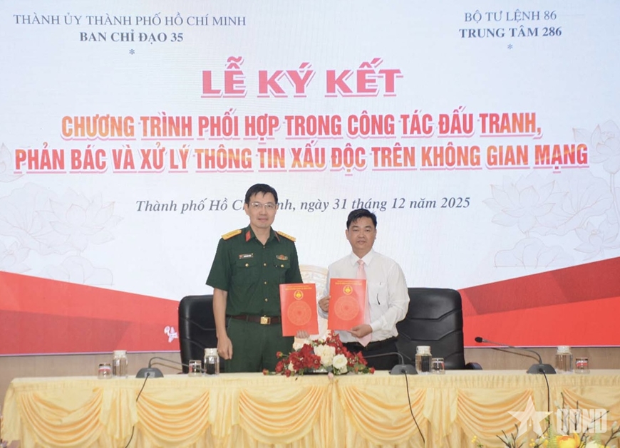Dịp này, Ban chỉ đạo 35 Thành ủy TP Hồ Chí Minh và Trung tâm 286 (Bộ tư lệnh 86) đã ký kết chương trình phối hợp trong công tác đấu tranh, phản bác và xử lý thông tin xấu độc trên không gian mạng.