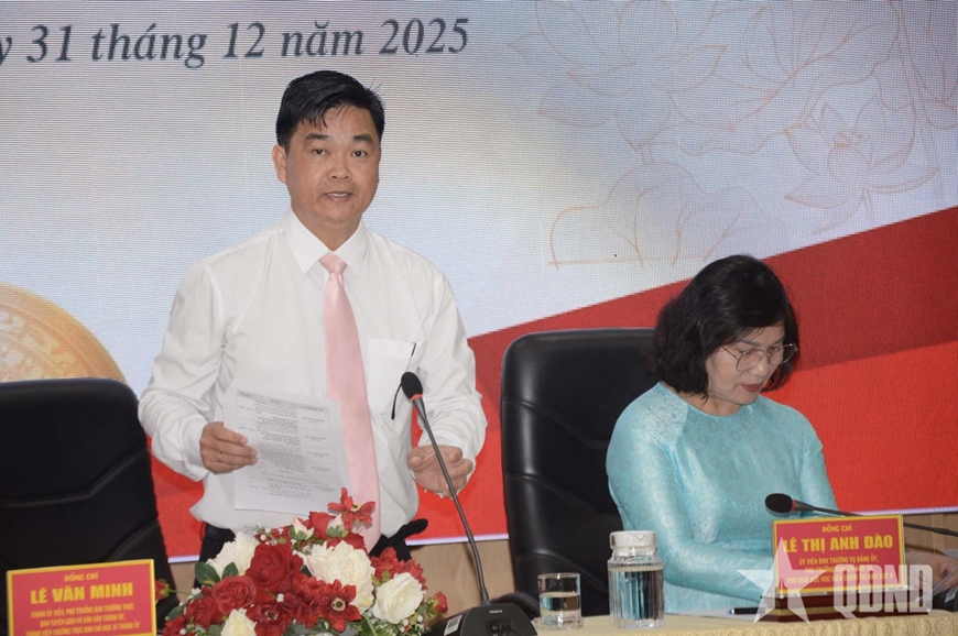 | Đồng chí Lê Văn Minh, Thành ủy viên, Phó trưởng ban Thường trực Ban Tuyên giáo và Dân vận Thành ủy, thành viên Thường trực Ban Chỉ đạo 35 Thành ủy TP Hồ Chí Minh chủ trì tọa đàm. |