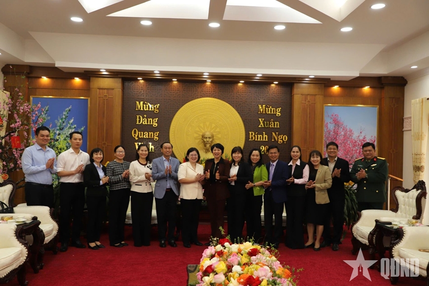 | Đồng chí Văn Thị Bạch Tuyết cùng các thành viên đoàn công tác chúc Tết đảng bộ, chính quyền và nhân dân tỉnh Lâm Đồng. |