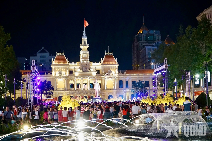 Hiện tại, dòng người đang náo nức đổ về trung tâm TP Hồ Chí Minh. Trong tiếng nhạc xuân rộn ràng và sắc màu lung linh của thành phố mang tên Bác, mọi người cùng hướng mắt lên bầu trời, chờ đợi màn pháo hoa bừng sáng, mở đầu cho một năm mới an lành, thịnh vượng.