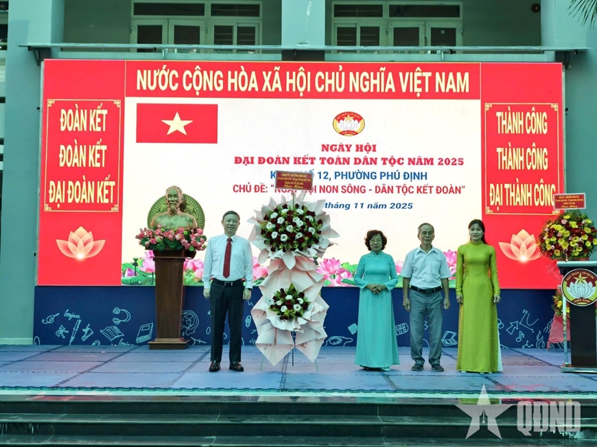 Tại khu phố 12, phường Phú Định (TP Hồ Chí Minh), Ngày hội Đại đoàn kết toàn dân tộc được tổ chức làm điểm với sự tham dự của ông Dương Anh Đức, Ủy viên Ban Thường vụ, Trưởng ban Tuyên giáo và Dân vận Thành ủy TP Hồ Chí Minh.