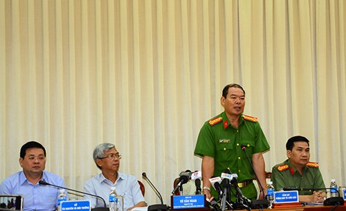 Đại diện Cảnh sát PCCC TP Hồ Chí Minh phát biểu tại buổi họp báo. |