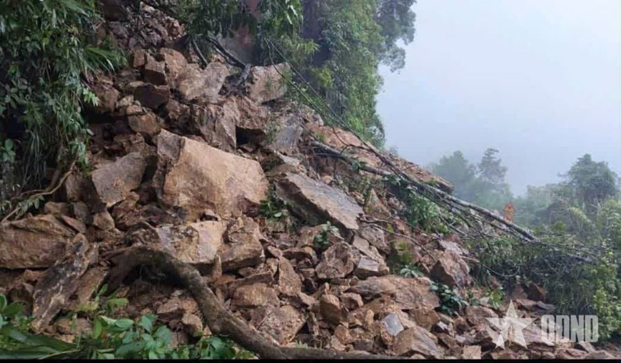 Mưa lũ gây sạt lở tại đèo Pake. Ảnh: Dân quân xã A Lưới 1