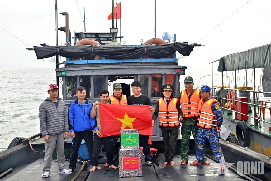 | Các lực lượng trao quà động viên ngư dân TP Huế. |