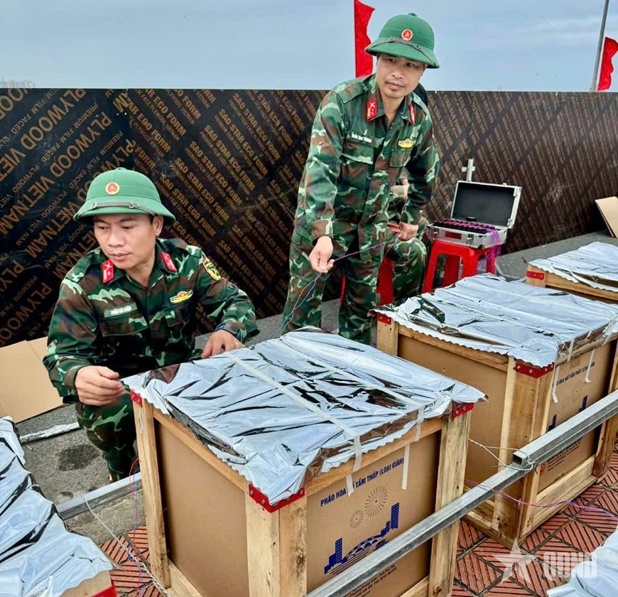 Ban Chỉ huy Phòng thủ khu vực 2 - Quảng Ninh (Bộ CHQS tỉnh Quảng Trị) là đơn vị được giao nhiệm vụ triển khai lắp đặt hệ thống giàn pháo hoa trên cầu Nhật Lệ với 60 giàn pháo hoa tầm thấp do Nhà máy Z121, Tổng cục Công nghiệp Quốc phòng sản xuất. Đại tá Ngô Hữu Tình, Chỉ huy trưởng Ban Chỉ huy Phòng thủ khu vực 2 - Quảng Ninh cho biết: Từ sáng sớm 16-2, cán bộ, nhân viên đơn vị đã khẩn trương triển khai công tác chuẩn bị, lắp đặt, kết nối hệ thống giàn bắn, kiểm tra kỹ thuật; đến 18 giờ 30 phút cùng ngày, mọi công tác chuẩn bị và vận hành được hoàn tất, bảo đảm an toàn tuyệt đối về người và trang bị.