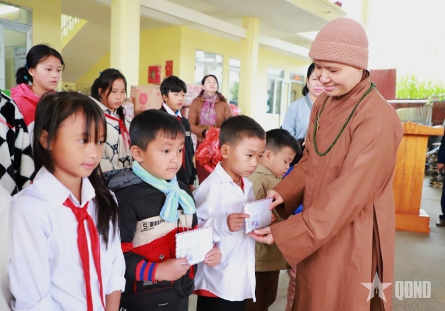 Ngày 3-11, tại Trường Phổ thông Dân tộc Bán trú Tiểu học và THCS Lũng Pù (xã Khâu Vai, tỉnh Tuyên Quang), đoàn thiện nguyện của Giáo hội Phật giáo Việt Nam tỉnh Thái Nguyên, Chùa Quan Thế Âm (Hà Nội) đã đến thăm và trao gần 2.000 phần quà tặng học sinh nhà trường.