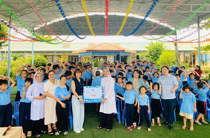 | Đoàn công tác tặng quà trẻ em Trường Khuyết tật tình thương Mỹ Lâm tỉnh An Giang - cơ sở thụ hưởng từ dự án "Gói mỳ hạnh phúc". |