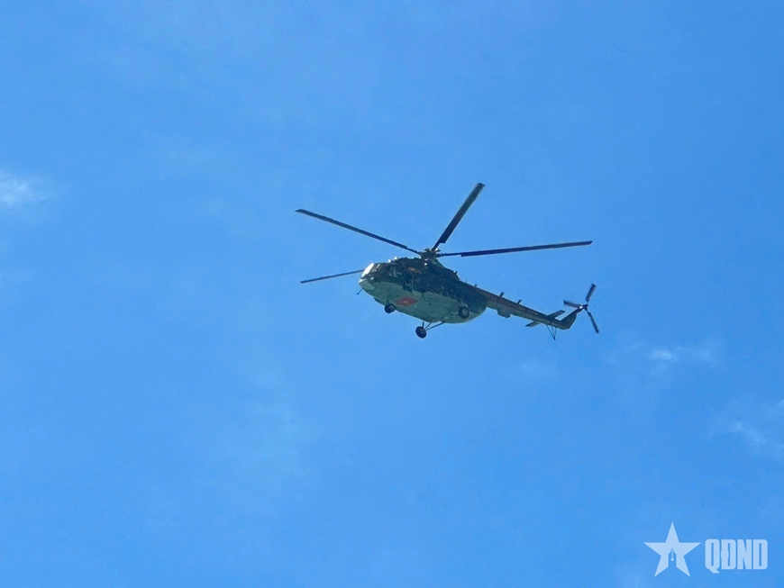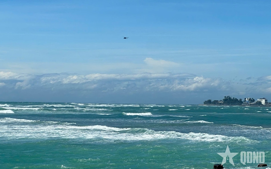 Máy bay trực thăng của Trung đoàn Không quân 930 (Sư đoàn Không quân 372, Quân chủng Phòng không - Không quân) bay tìm kiếm 3 nạn nhân mất tích tại Lý Sơn.