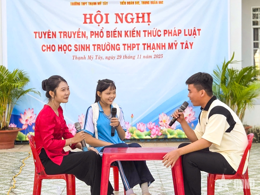 Đại diện Ban Giám hiệu Trường THPT Thạnh Mỹ Tây đánh giá cao vai trò của lực lượng vũ trang trong đồng hành giáo dục thế hệ trẻ, khẳng định: “Trong bối cảnh các thông tin xấu độc trên mạng xã hội tác động ngày càng mạnh đến học sinh, việc phối hợp với Tiểu đoàn 512 tổ chức những buổi tuyên truyền thiết thực như thế này giúp các em trang bị ‘lá chắn’ pháp lý, nâng cao khả năng nhận diện đúng - sai, từ đó tự điều chỉnh hành vi”.