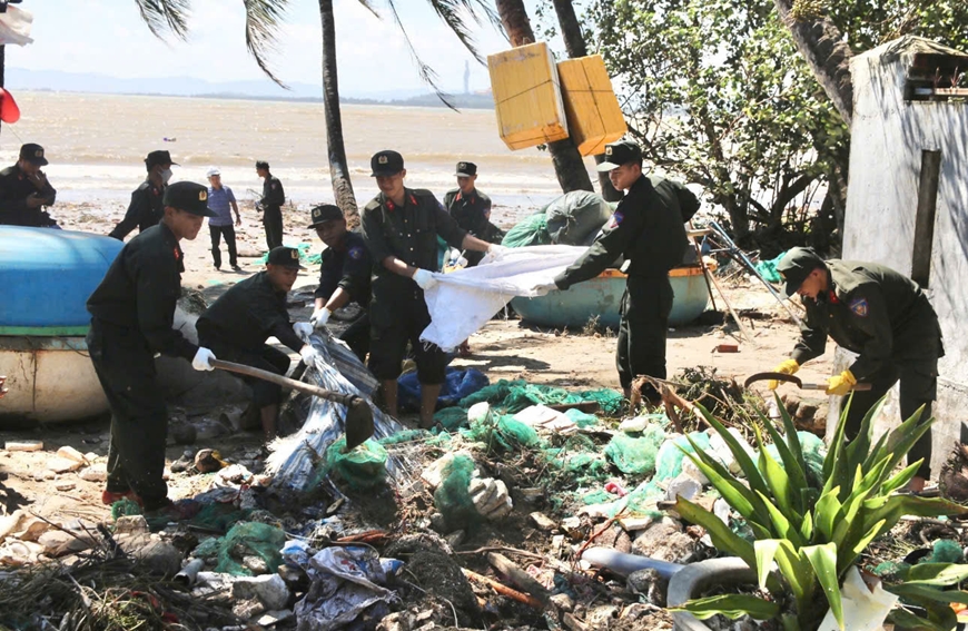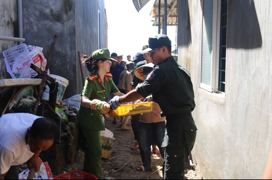 Trước những thiệt hại nặng nề do bão số 13 gây ra, từ ngày 7-11, Trung đoàn Cảnh sát cơ động (CSCĐ) Nam Trung Bộ (trực thuộc Bộ tư lệnh CSCĐ) đã điều động hàng trăm lượt cán bộ, chiến sĩ cùng nhiều phương tiện, dụng cụ đến các địa bàn bị ảnh hưởng nặng nề, kịp thời giúp nhân dân khắc phục hậu quả.