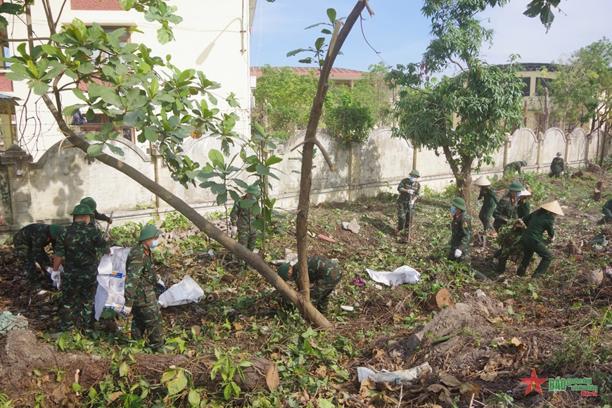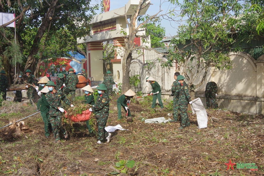 Chỉ trong một ngày, tuổi trẻ của đơn vị và địa phương tổ chức dọn dẹp cây xanh khô, gãy đổ, làm cỏ, san mặt bằng khu vực trước cổng chính đơn vị; phát quang bụi rậm, khơi thông kênh mương, quét dọn, thu gom lượng lớn rác thải, chỉnh trang cảnh quan tuyến đường liên thôn xã Đại Bản dài 1,5km mang lại diện mạo xanh - sạch - đẹp cho đơn vị và nhân dân.