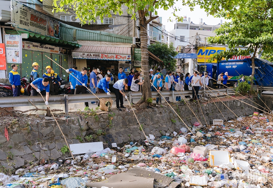 Tuổi trẻ TP Hồ Chí Minh chung tay dọn dẹp vệ sinh các tuyến kênh. |