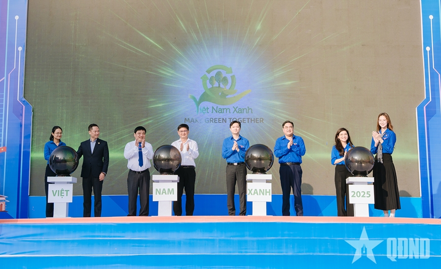 Các đại biểu thực hiện nghi thức phát động thực hiện chương trình “Việt Nam xanh” năm 2025. |