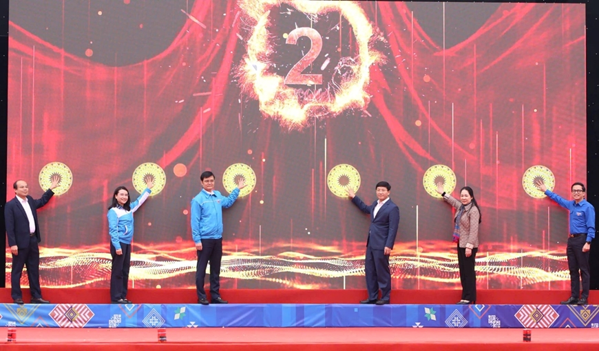 Các đại biểu thực hiện nghi thức khởi động Đề án "Tuổi trẻ Việt Nam đồng hành với thanh thiếu nhi vùng biên giới giai đoạn 2025 - 2030".