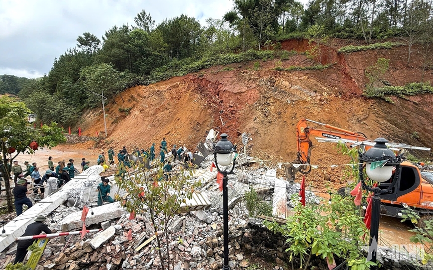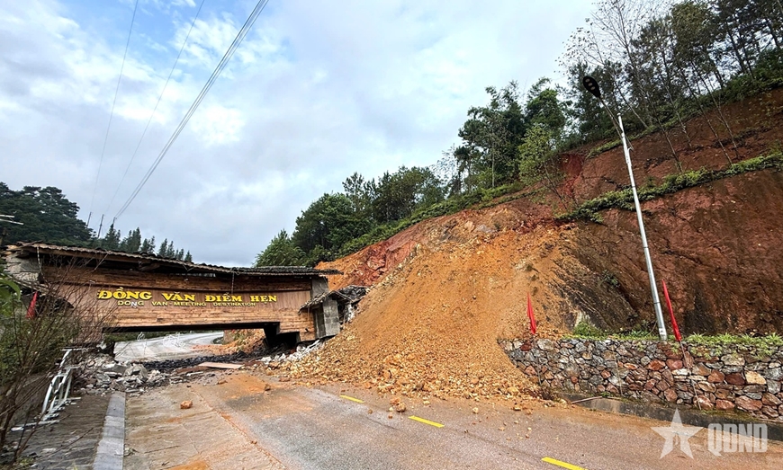 Đặc biệt, sáng 8-10, cổng chào trung tâm xã Đồng Văn – công trình biểu tượng văn hóa được khánh thành vào tháng 11-2024 bị sạt lở đất đá làm hư hỏng hoàn toàn. Công trình trị giá hơn 1,5 tỷ đồng, hoàn toàn từ nguồn xã hội hóa, là điểm nhấn du lịch của vùng cực Bắc Tổ quốc.