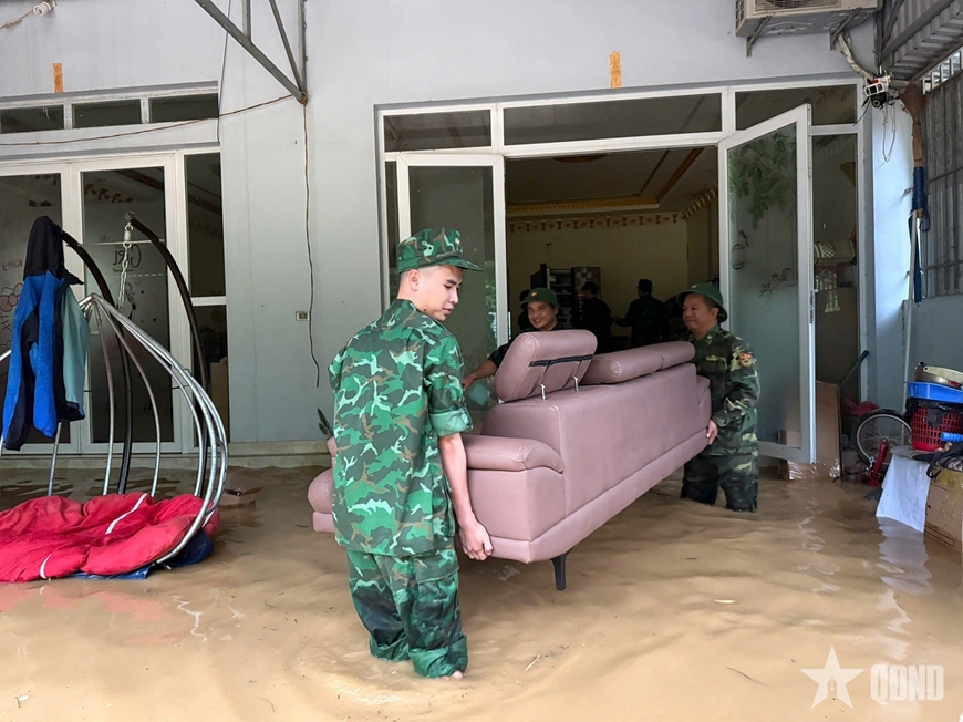Cán bộ, chiến sĩ Đồn Biên phòng Cửa khẩu Quốc tế Thanh Thủy, Ban Chỉ huy Bộ đội Biên phòng tỉnh Tuyên Quang hỗ trợ người dân di dời tài sản. |