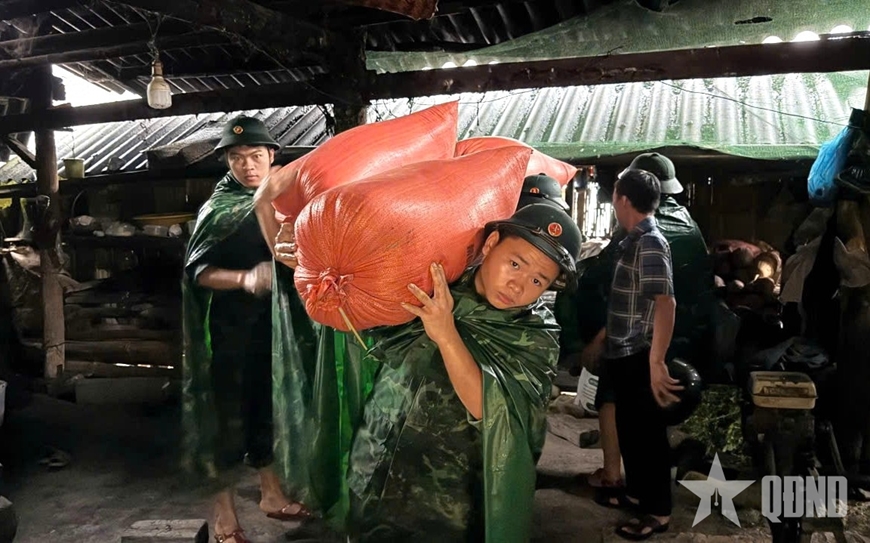 Lực lượng vũ trang tỉnh Tuyên Quang giúp nhân dân di dời tài sản, chủ động ứng phó với hoàn lưu bão số 11.