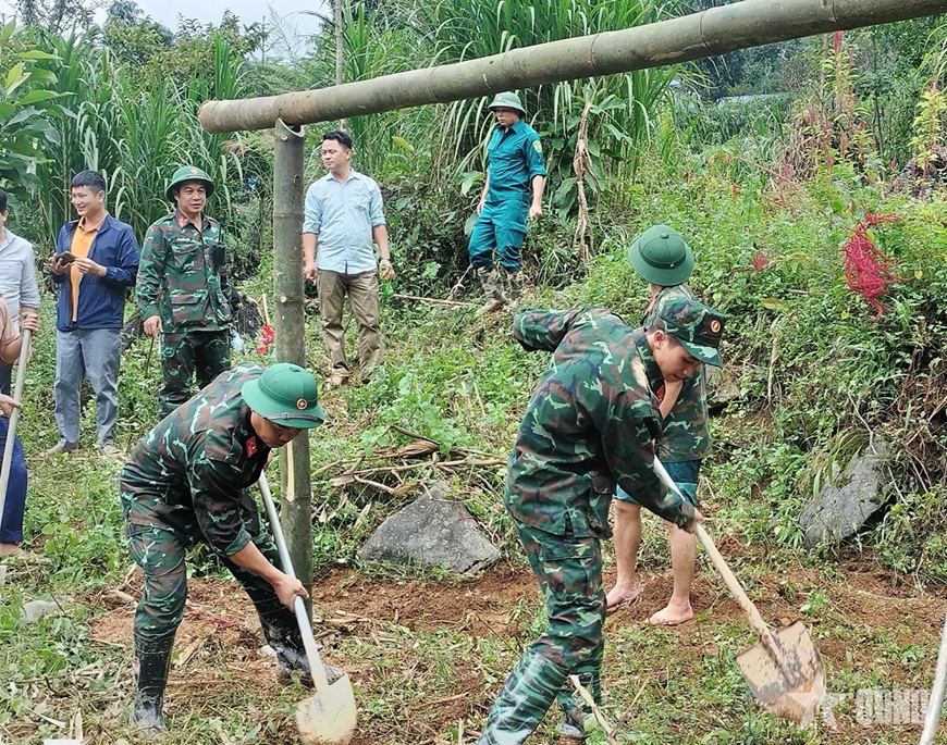 Lực lượng vũ trang tỉnh Tuyên Quang khẩn trương dựng lều tạm, bảo đảm nơi ở an toàn cho người dân thôn Má Lầu A, xã Lũng Cú sau mưa bão. |