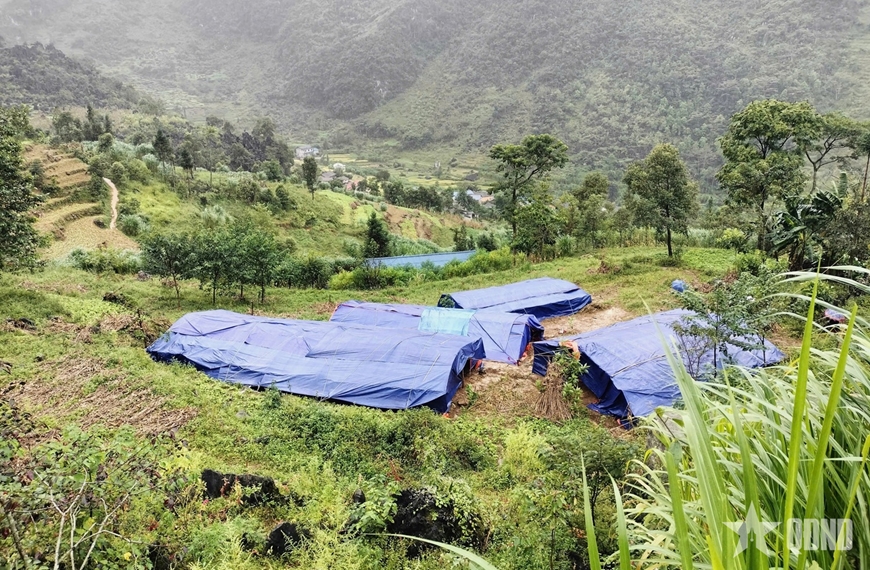 Người dân thôn Má Lầu A, xã Lũng Cú (Tuyên Quang) đã được bố trí nơi ở tạm an toàn sau khi sơ tán khỏi khu vực có nguy cơ sạt lở. |