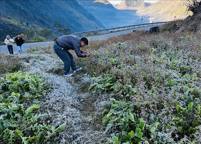 Đặc biệt, tại các xã Lũng Cú, Đồng Văn, Sơn Vĩ, Sính Lủng… băng giá và sương muối xuất hiện dày, phủ trắng trên mái nhà, đường đi và cây cối.