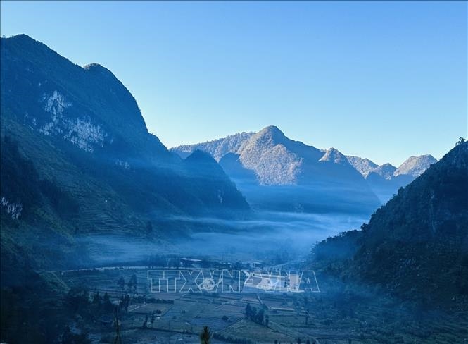 Sáng 29-11, không khí lạnh tăng cường mạnh khiến nhiệt độ tại khu vực cao nguyên đá Đồng Văn (Tuyên Quang) giảm xuống dưới 0°C.