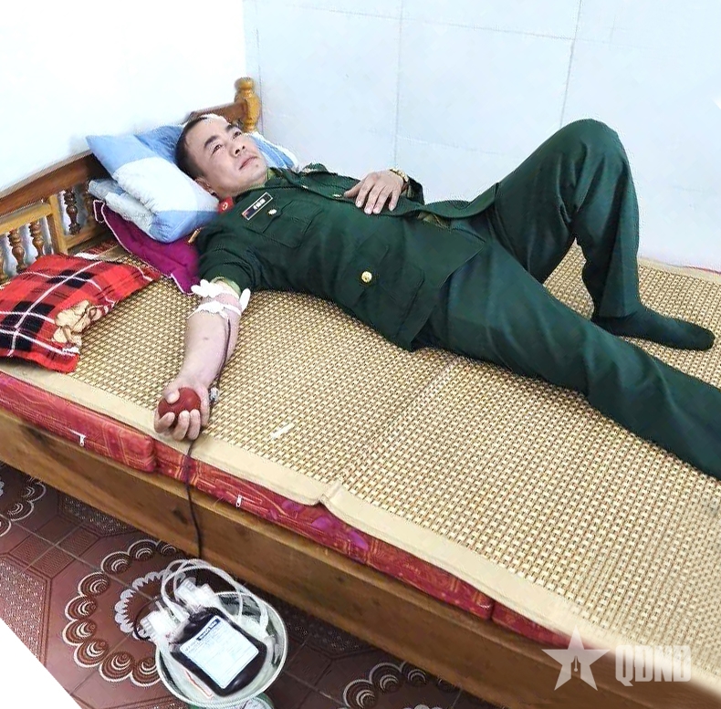 | Thiếu tá QNCN Vũ Tuấn Anh, Ban Chỉ huy phòng thủ khu vực 3 – Bắc Quang (Bộ CHQS tỉnh Tuyên Quang), hiến máu kịp thời để cứu bệnh nhân nguy kịch. |