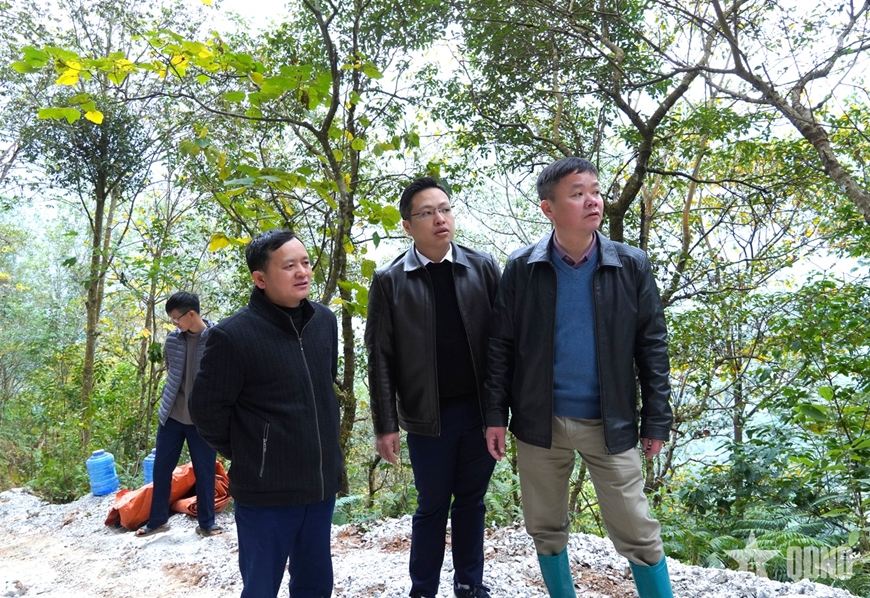 | Lãnh đạo UBND xã Sơn Vĩ (Tuyên Quang) kiểm tra, đôn đốc tiến độ thi công các công trình thuộc chương trình mục tiêu quốc gia. |