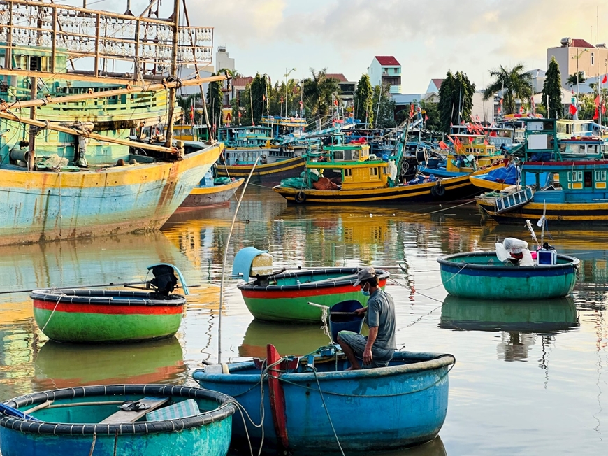 Tàu cá neo đậu tại sông Cà Ty, phường Phan Thiết, tỉnh Lâm Đồng để tránh cơn bão số 15. Ảnh: baolamdong.vn